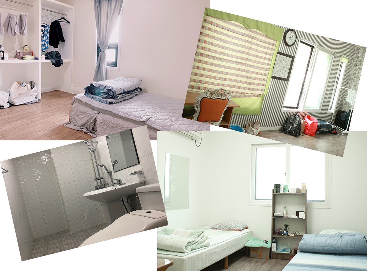 기숙사는 1인실, 2인실, 3인실로 구성되어 있어서 개인 성향에 맞게 선택할 수 있습니다.