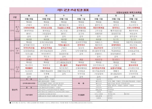 9/8~9/14 주간식단표
