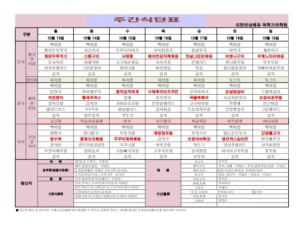 10/13 ~10/19 주간식단표